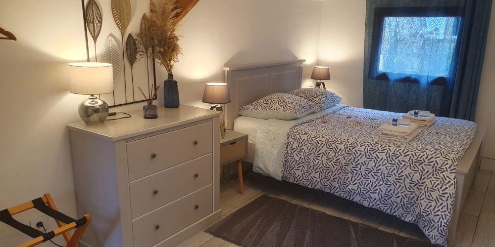 - Voyageurs : 4-5 personnes (1 lit double, 2 lits simples, canapé convertible étage pour enfant/ado), lit parapluie gratuit.